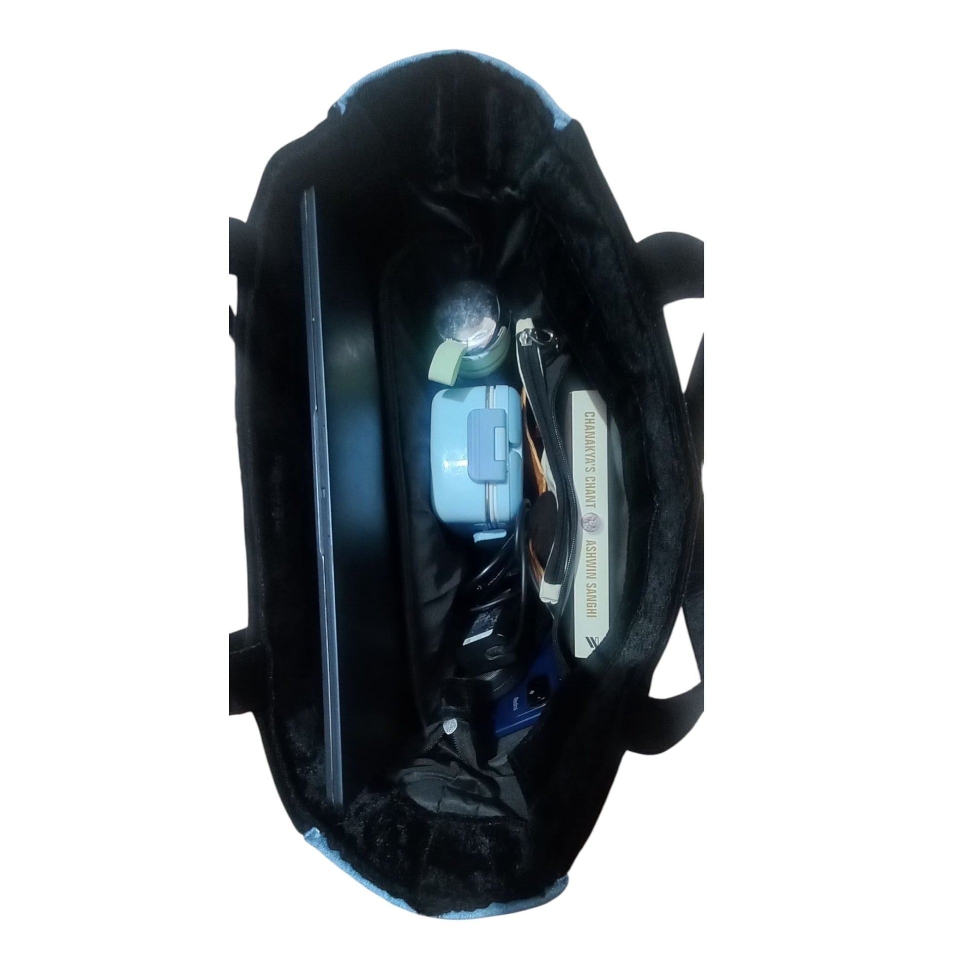 Step out in style with the Catwalk Chic Tote, a perfect blend of charm, craftsmanship, and functionality. This hand-embroidered handbag features an adorable cat motif, crafted with intricate detailing and a touch of playful elegance. The unique jeans-textured fabric paired with soft black canvas makes it both trendy and versatile, ideal for daily use or special outings.