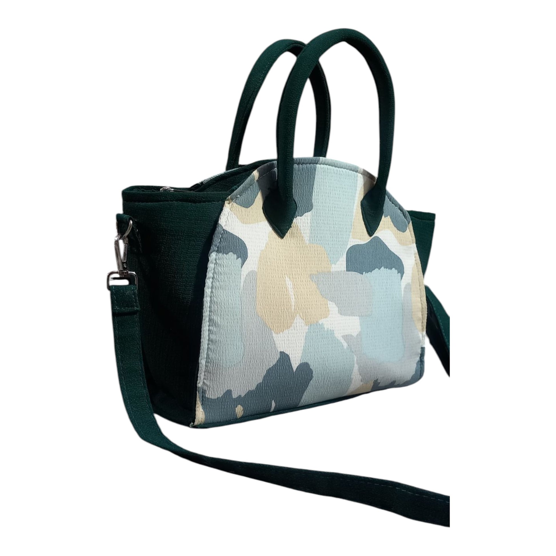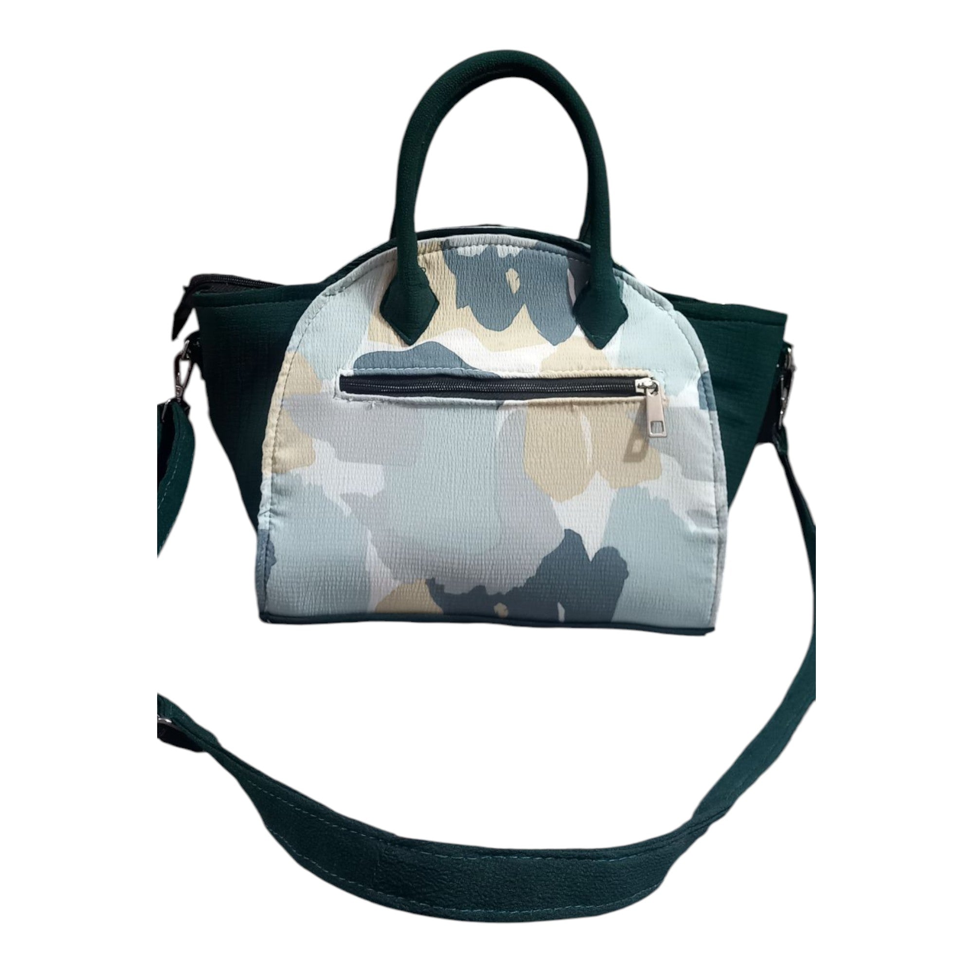 Unleash your inner trendsetter with the Urban Camo Dome Tote, a masterpiece that fuses street-style allure with timeless elegance. This statement handbag redefines sophistication with its exotic design, meticulously handcrafted to perfection. Each piece is adorned with intricate embroidery that captures the essence of modern camouflage—effortlessly blending into vibrant cityscapes while commanding attention. The dome satchel silhouette is both chic and functional, offering a capacious interior to accommodate all your essentials with ease. Its canvas smoothy exterior, embellished with a captivating sea stone texture, evokes a sense of serene luxury. This designer satchel is not just a bag, it's a bold proclamation of your impeccable taste and adventurous spirit. Embrace the extraordinary and elevate every ensemble with the Urban Camo Dome Tote—a true testament to your unique style. Transform intention into action; your iconic accessory awaits.