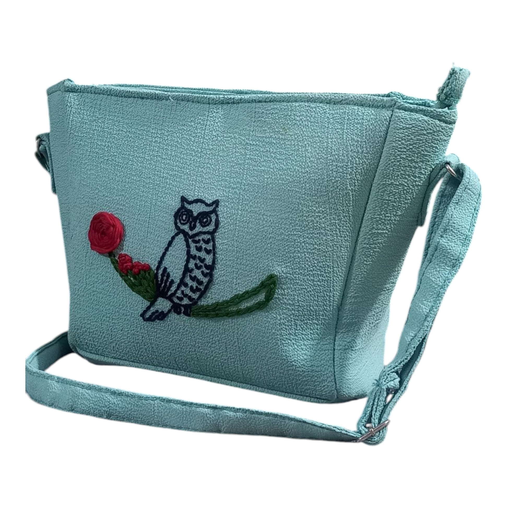 Step into elegance with the Owluxe Sling Bag, a perfect blend of charm, craftsmanship, and symbolism. Hand-embroidered with a wise owl motif perched gracefully on a floral branch, this designer bag brings both style and meaning—an emblem of wisdom and blessings.