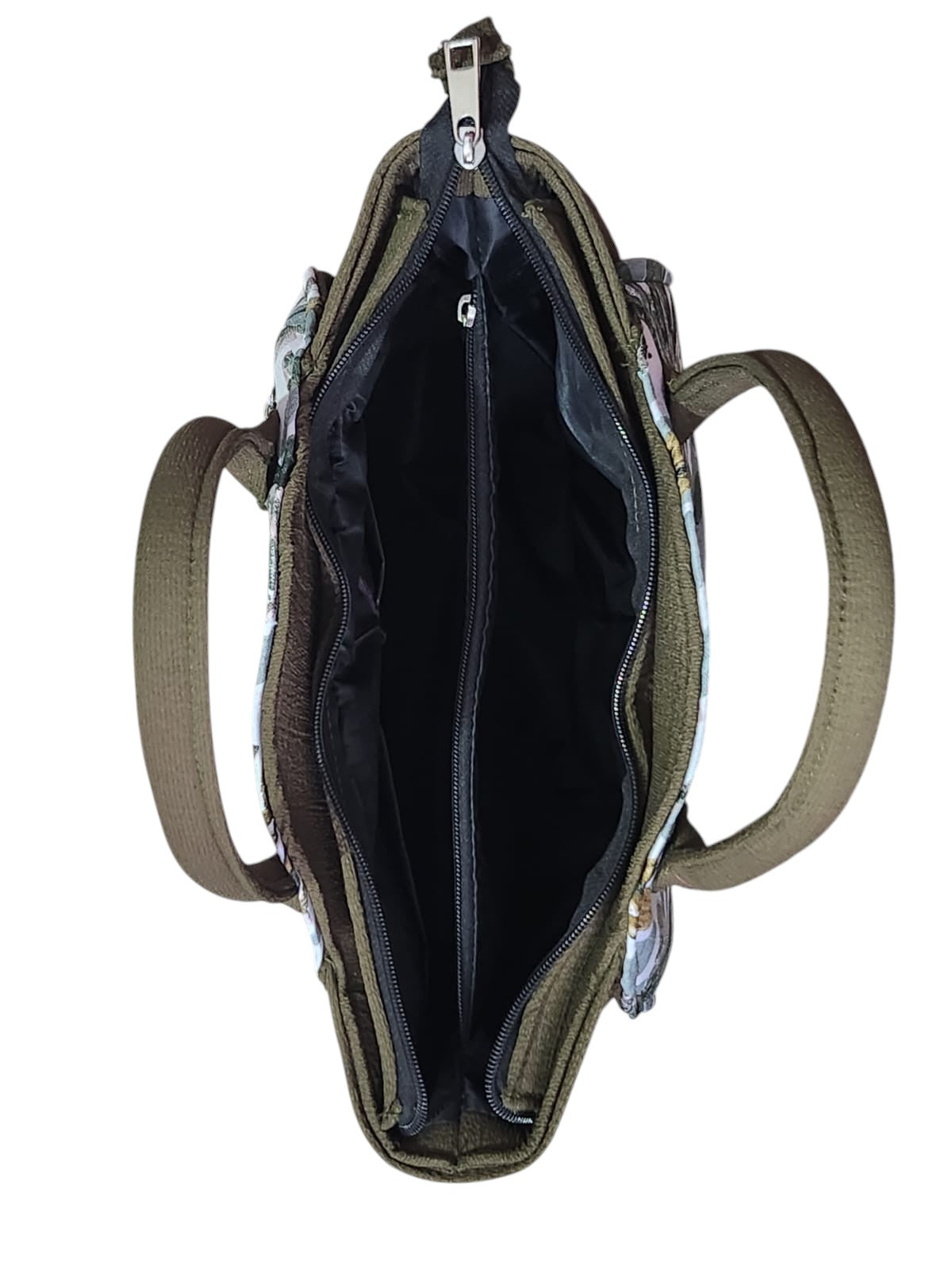 Crafted with care by skilled artisans, this hand-embroidered handbag showcases intricate floral detailing, durable structure, and premium finishing. Designed as a carryall purse for women, it offers ample space for your essentials, making it ideal for office use, outings, or special occasions.